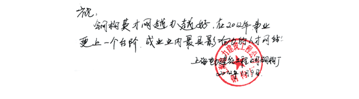 上海电力建筑工程公司钢构厂 寄语内容: