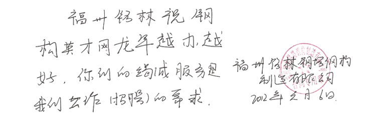 福州铭林钢塔钢构制造有限公司 寄语内容: