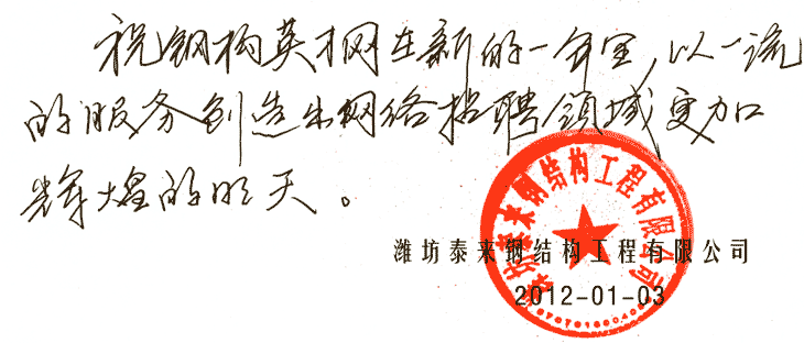 潍坊泰来钢结构工程有限公司 寄语内容: